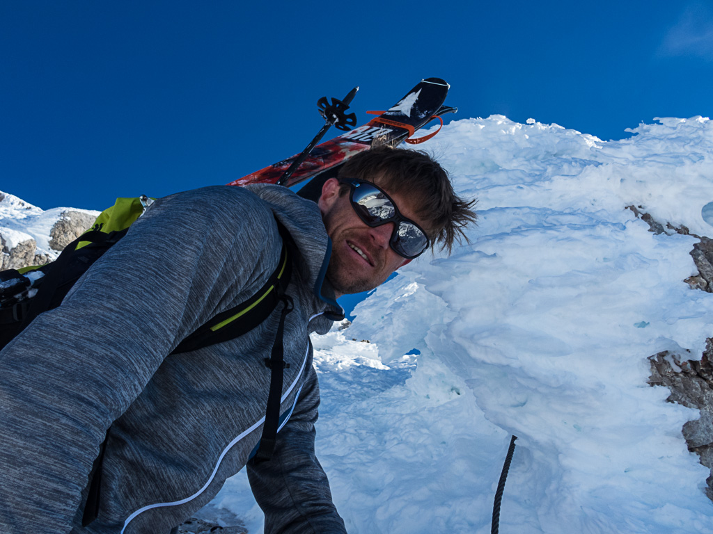 Schnell über den Westgrat absteigen und Hand an die Wand legen, damit