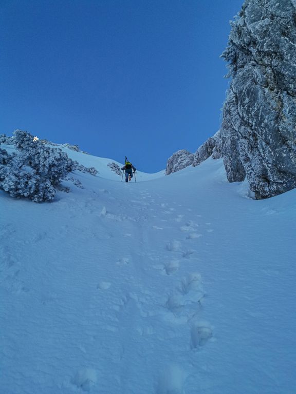 Nach unglaublichen 2 Stunden für 200 Hm kommmen wir endlich in mir bekanntes Gelände. Die am 1. Jänner unternommene Besichtigung hilft uns jetzt enorm weiter.