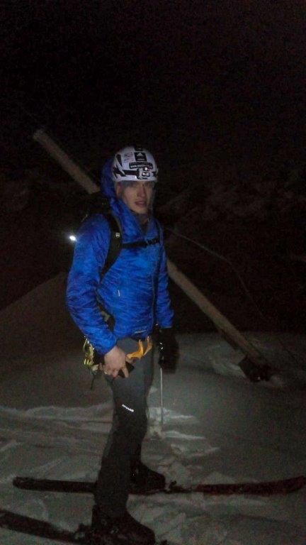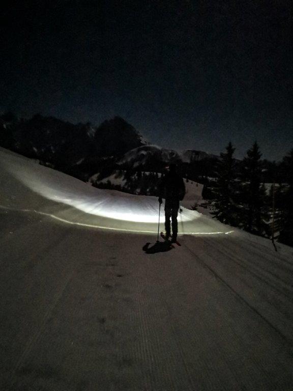 Stirnlampen. Gefühlt direkt unter uns, sehen wir bereits die Hütte wo