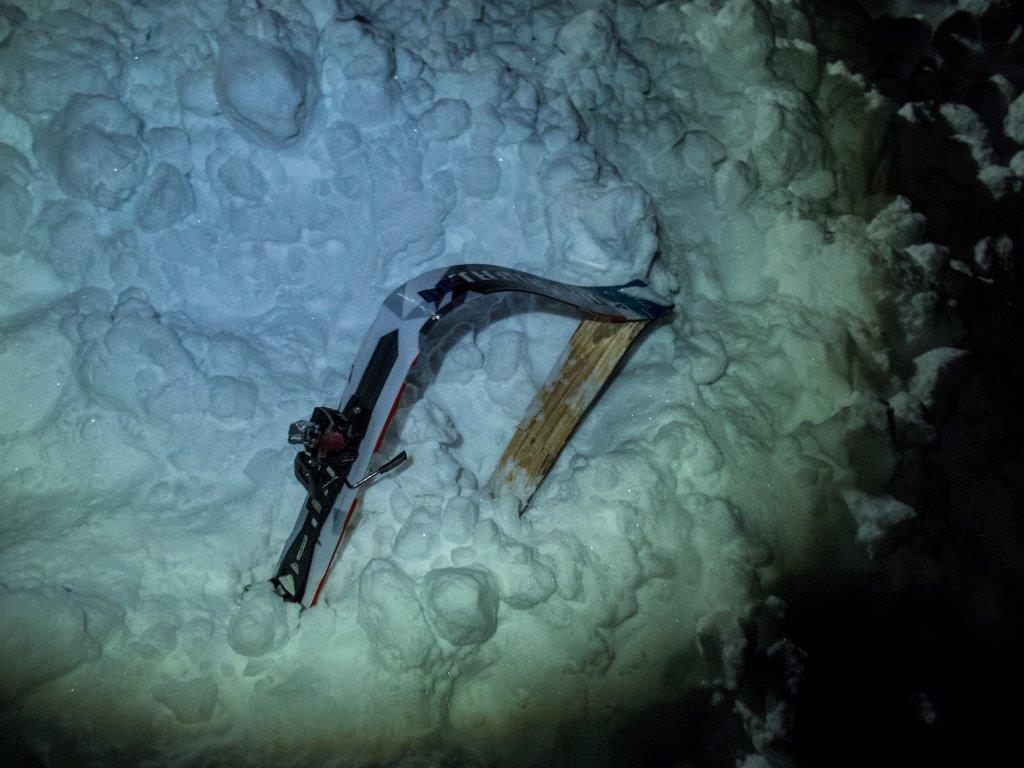 am Vortag eine große Nassschneelawine abgegangen und hat die gesamte