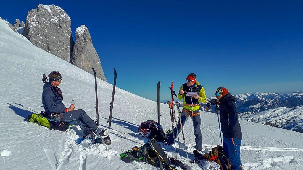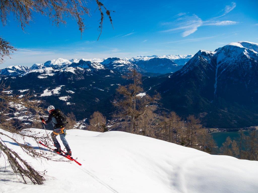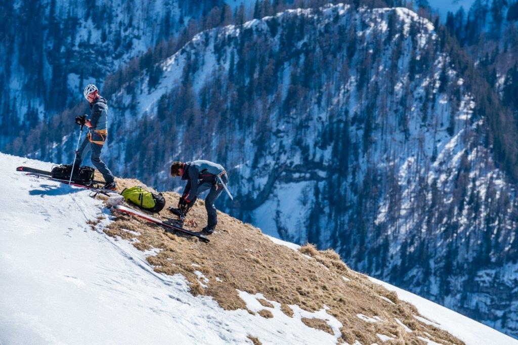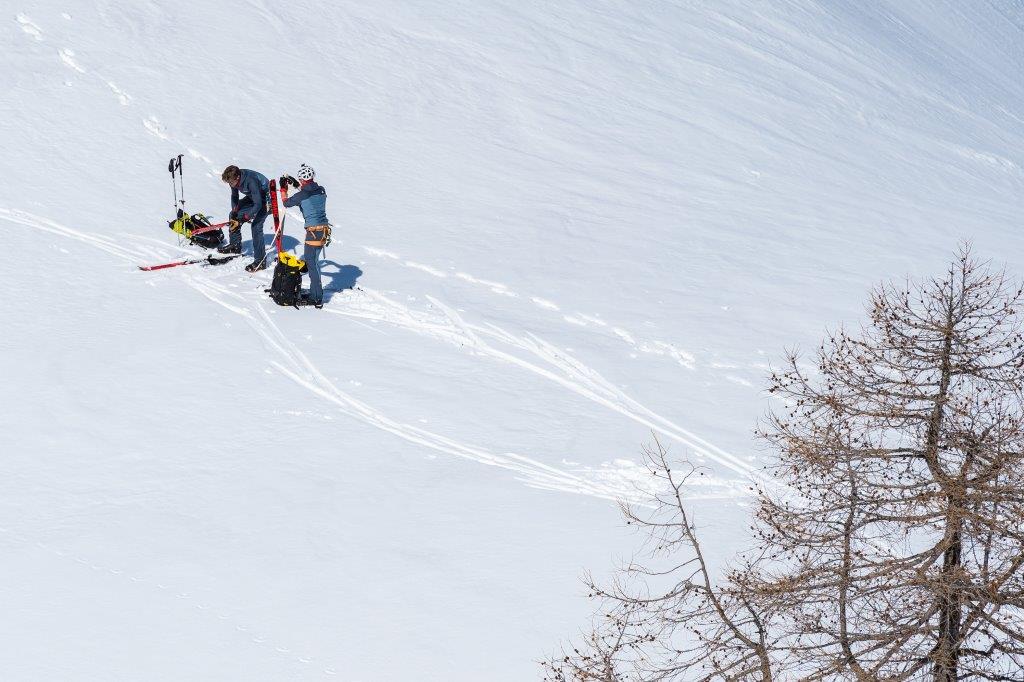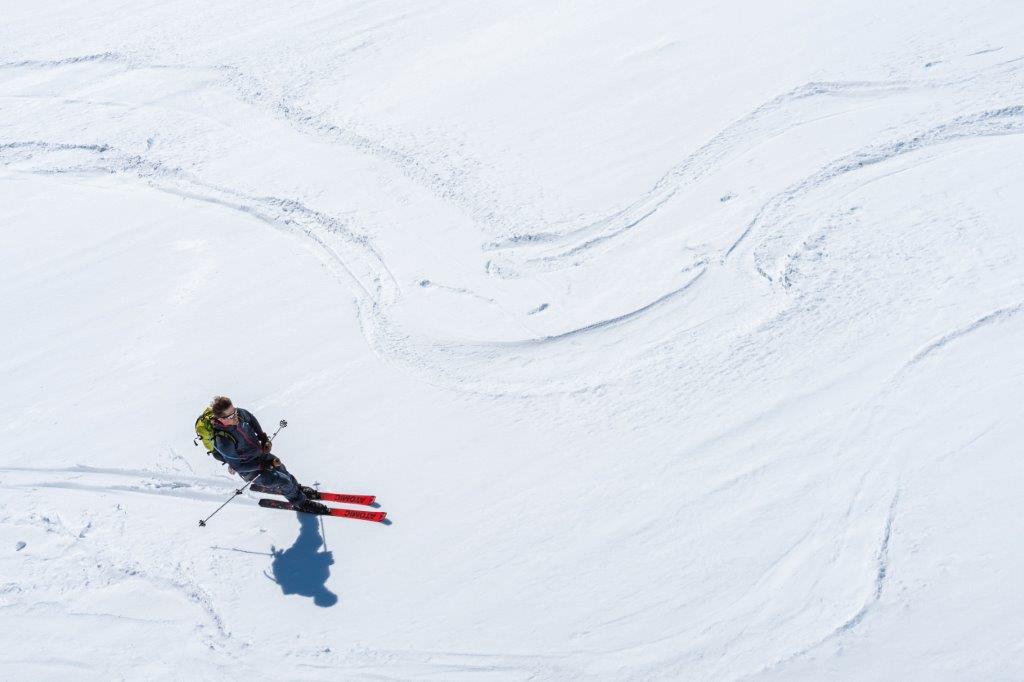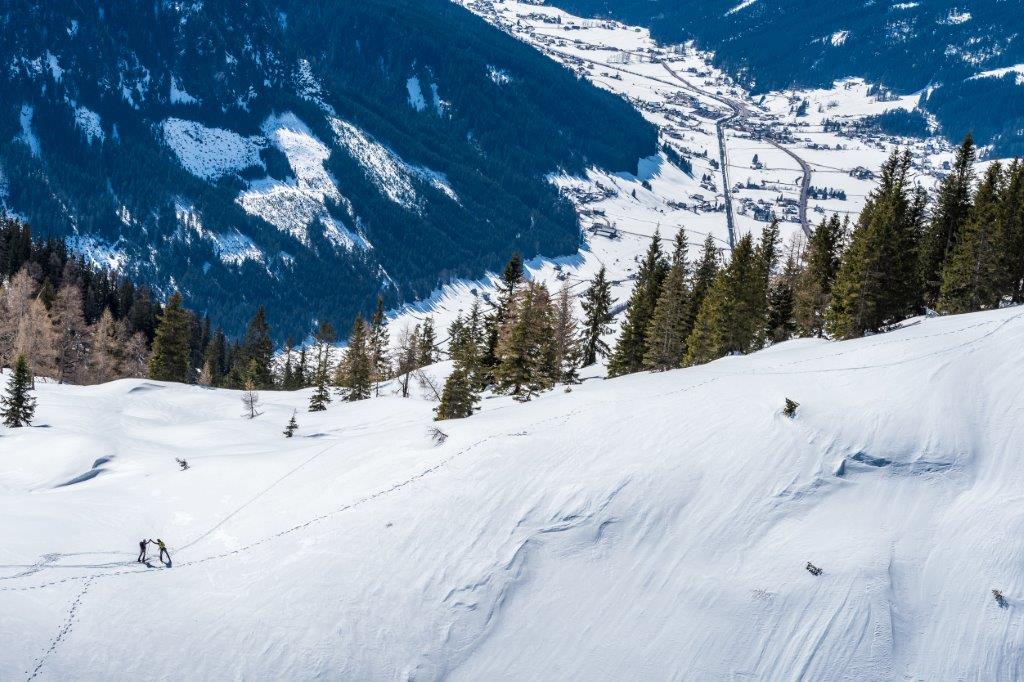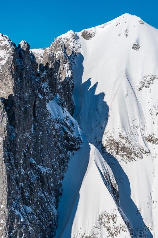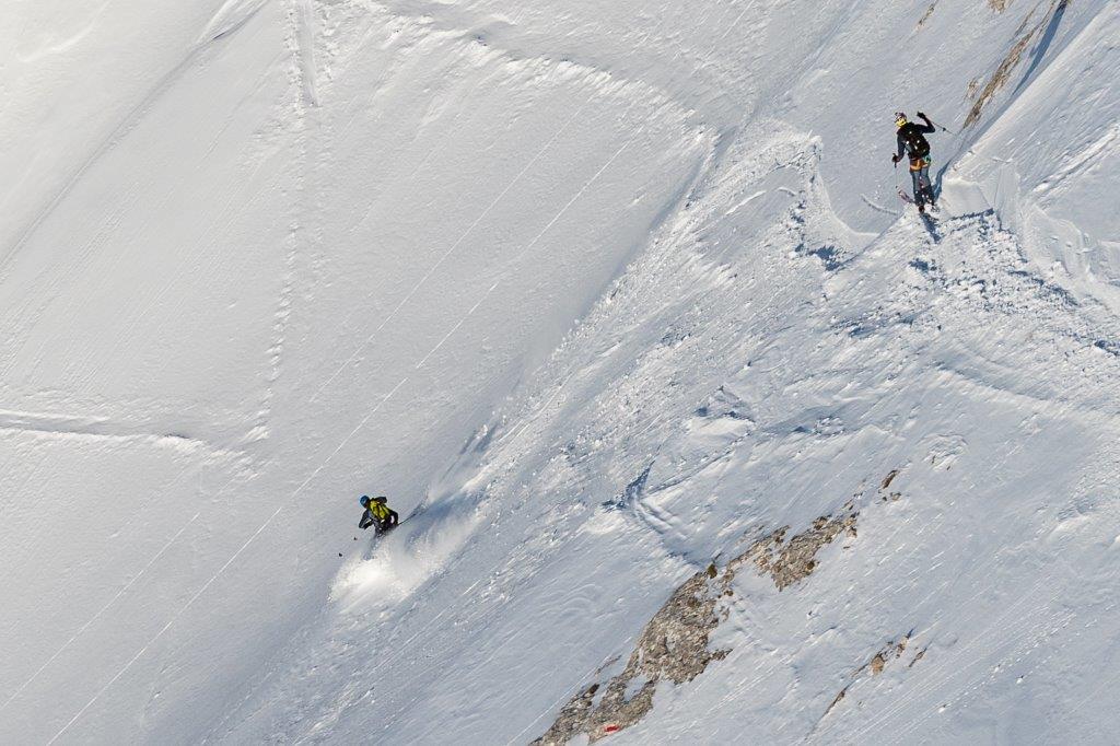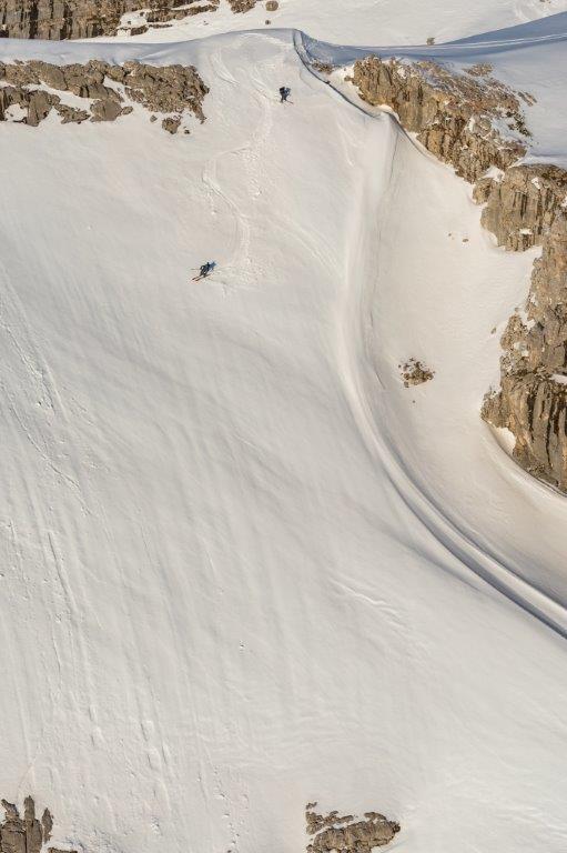 Skiabfahrten durch sehr selektives Gelände. Nun ist die Schneedecke so
