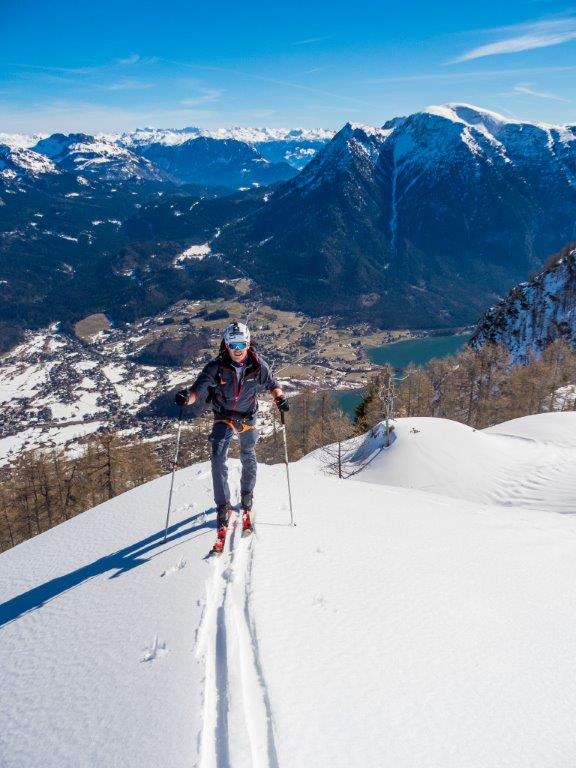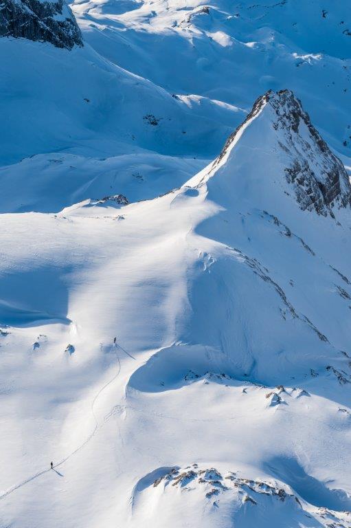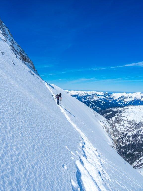 wieder steiler, doch der Schnee hält traumhaft gut und so können wir