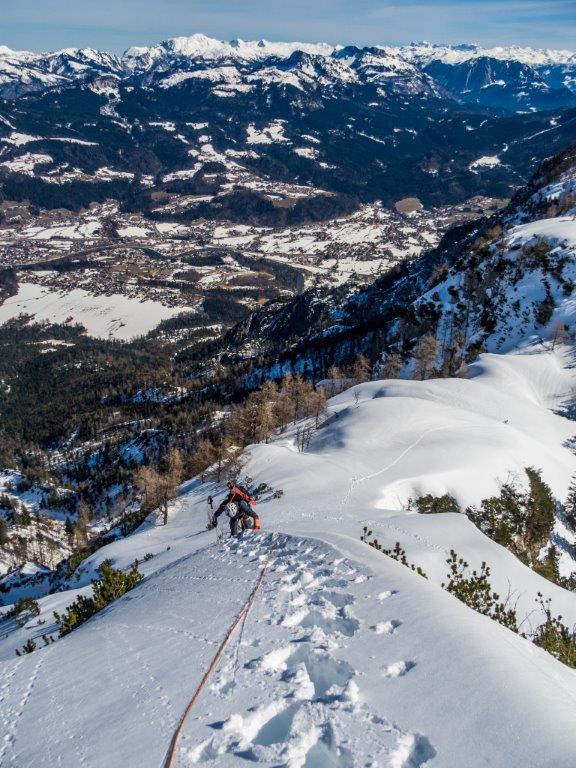 den Eiskarlspitzen immer weiter in Richtung Schneebergwand.