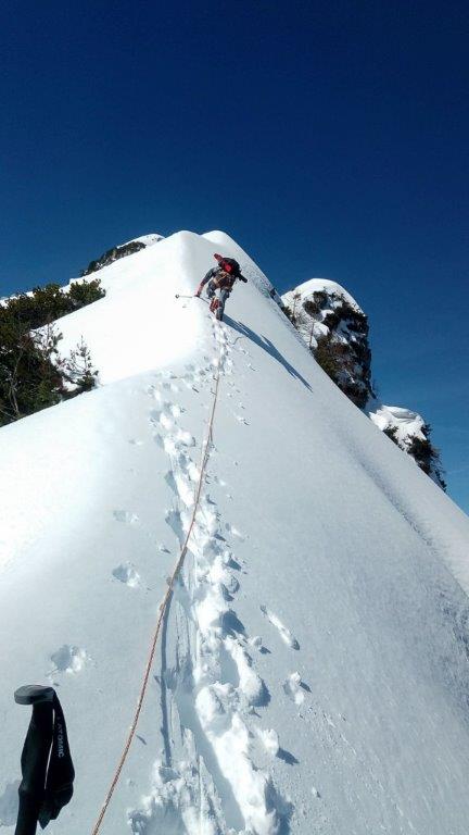 eisige Wind macht es nicht besser und bremst uns weiter. Der Westgrat
