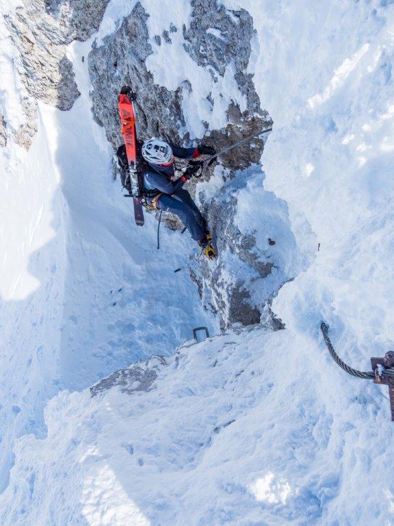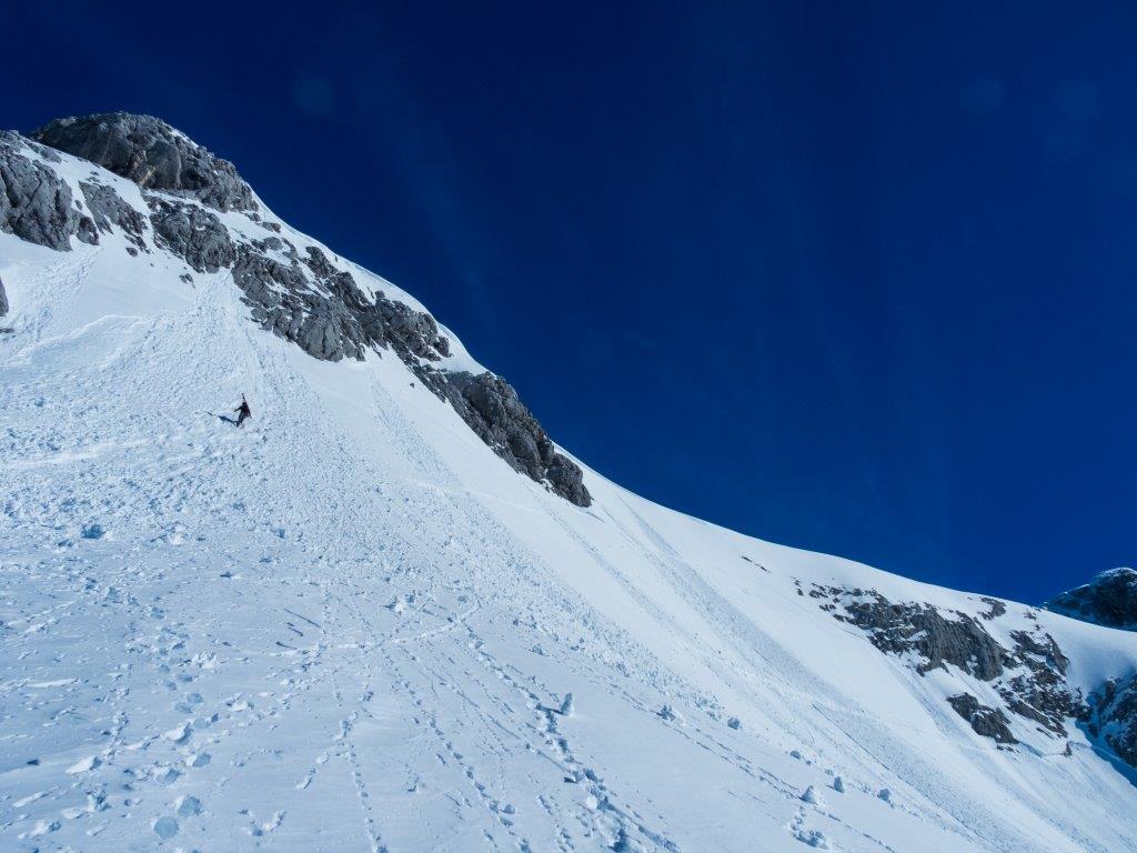 wir den Mittelteil der Steilrinne die teilweise 45° und mehr beträgt.