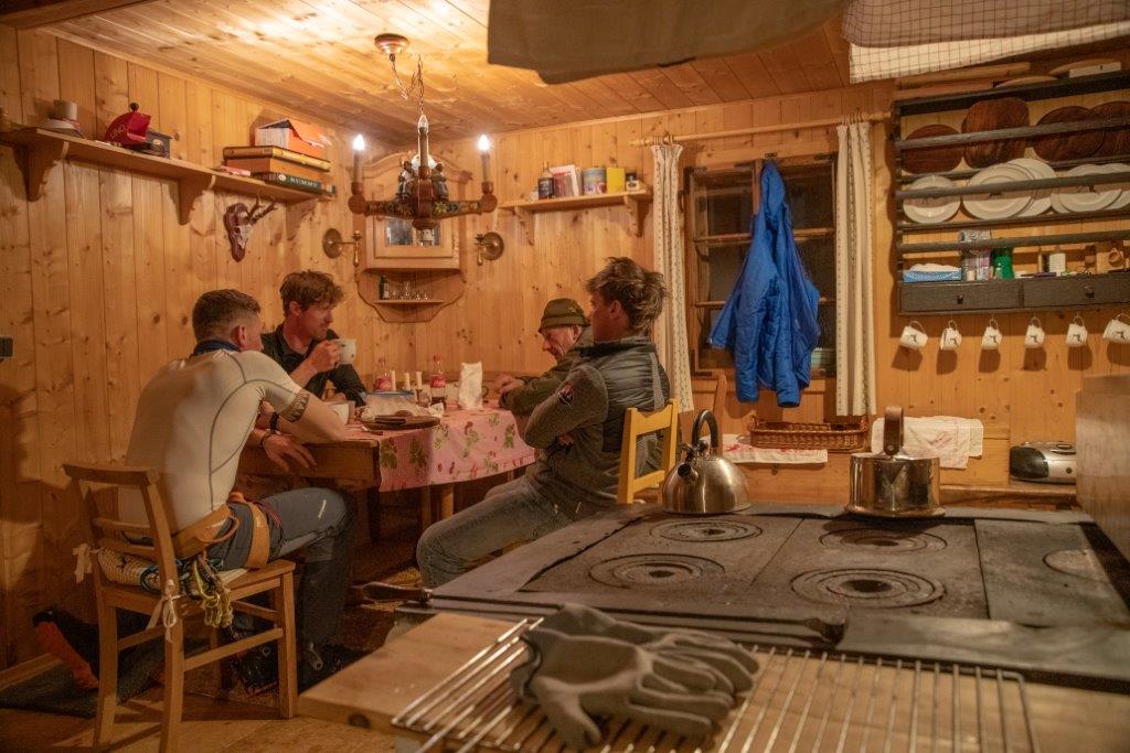 Karstube. Stef und Flo leisten uns Gesellschaft. Leider sind wir nicht