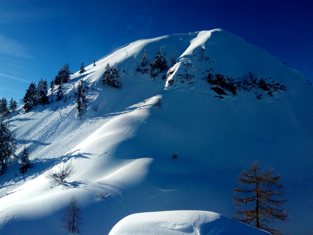 Die Lawinensituation entschärft sich nicht wirklich, aber dennoch starten Christoph und ich wieder eine Tour. Die Erkundung vom Bäwuchzler und dem Plankensteingebiet ist nicht minder wichtig, wenngleich hier nicht viele Höhenmeter anfallen. Verbunden mit dem Anstieg vom Gosausee, wurde es zu einer genialen Skitour.